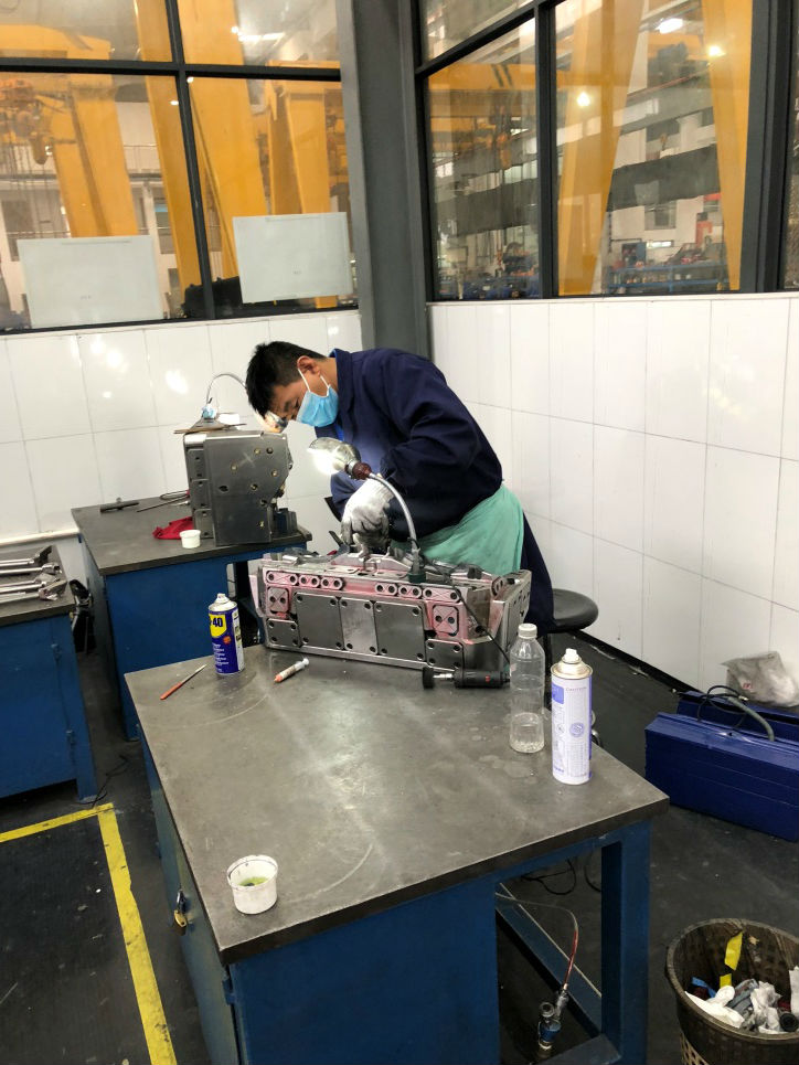 那時剛好是下午下班時間前后,優化二組組長還是給拋光部門打了電話尋求拋光技術的支持,讓人沒想到的是,飯點剛過,晚班都還未打鈴開始,拋光員李華就已經帶著工具趕到了試模現場,在他拿起之前打好的產品向同事確認好目前存在的問題點后,隨即告訴現場人員說:“這問題包在我身上,我給解決好”。關鍵時刻這樣的一句話,是他的承諾更是他的決心,就像是一股暖流,瞬間讓現場的同事和客戶們緊繃著地心寬慰許多。也是,說不定就可以不用下機呢,說不定今天就能解決好呢,說不定這次預驗收還能過呢,說不定下次就不用坐上四十多個小時飛機再特意來一趟呢。他轉身走進機臺,開始此次的“技術支援行動”——直接在機臺上解決這個壓印問題,也就避免因模具下機可能會造成的各方面的資源浪費,而且期間一直配合我們優化的同事、配合客戶去積極正面地溝通問題、解決問題。
